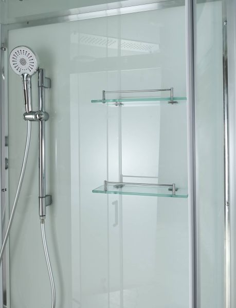 Стильная душевая кабина AvaCan сочетает в себе высокую функциональность, практичность и надежность. При изготовлении применяется безопасное закаленное стекло, надежно фиксируемое алюминиевым профилем. Профиль сделан из алюминия повышенной прочности. Сборка без силикона (увеличивает срок службы, защищает от протечек), внутренняя сборка (облегчает установку и ревизию; позволяет установить в ограниченном пространстве и обойтись без демонтажа других сантехнических приборов), смеситель резьбовой (без хомутов). Двойные металлические ролики дверей (распределение нагрузки на два ролика, увеличивают срок службы). Душевая штанга(позволяет регулировать по высоте ручную лейку), ручная арома-лейка с витамином С (картридж в комплекте,есть возможность замены или удаления картриджа), полочки(из стекла, с ограничителем), сифон с гидрозатвором.