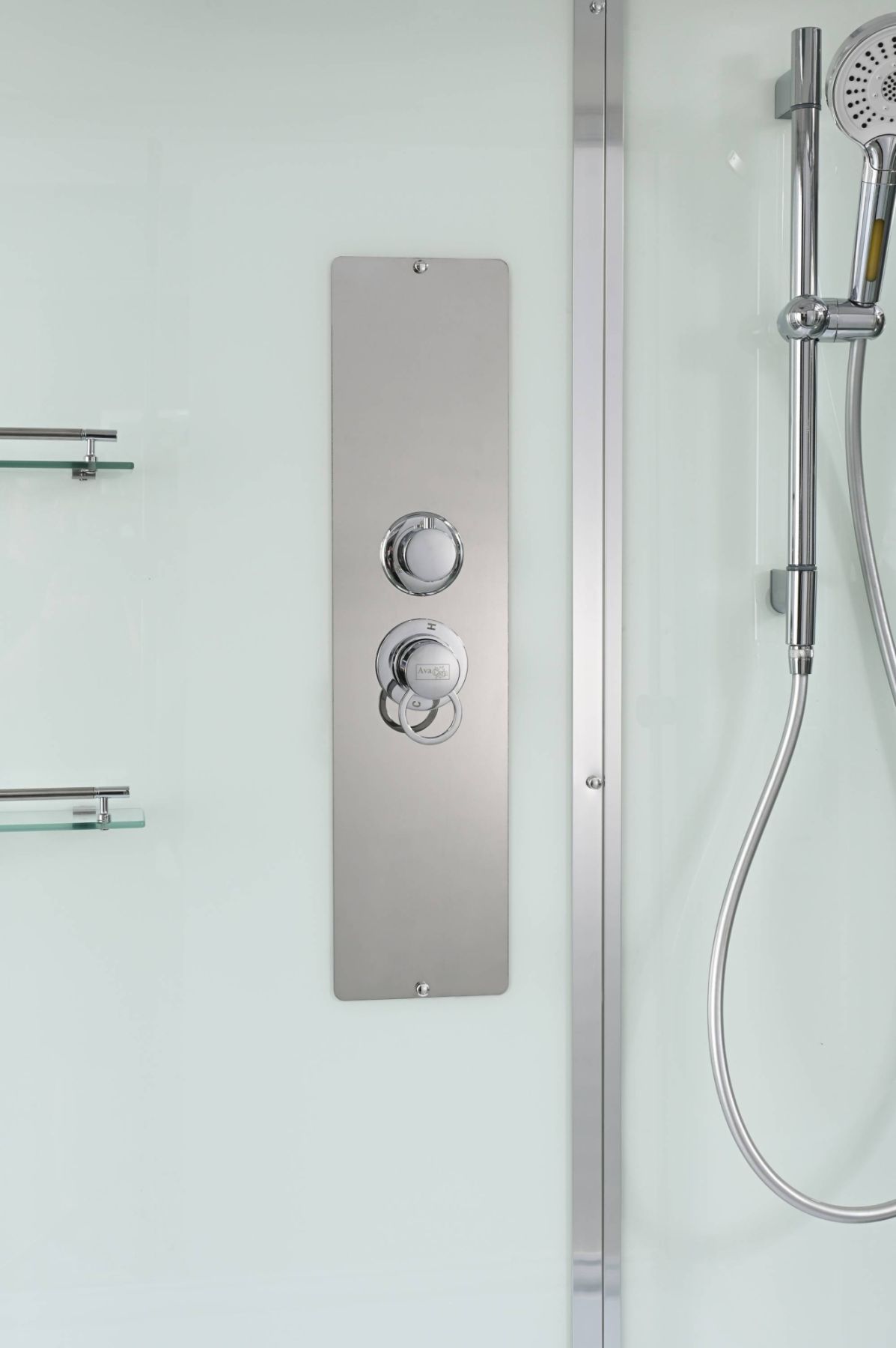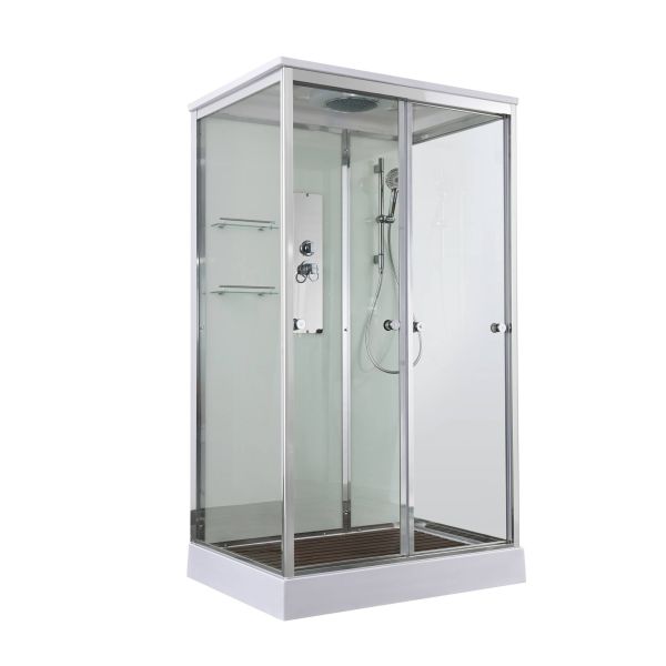 Стильная душевая кабина AvaCan сочетает в себе высокую функциональность, практичность и надежность. При изготовлении применяется безопасное закаленное стекло, надежно фиксируемое алюминиевым профилем. Профиль сделан из алюминия повышенной прочности. Сборка без силикона (увеличивает срок службы, защищает от протечек), внутренняя сборка (облегчает установку и ревизию; позволяет установить в ограниченном пространстве и обойтись без демонтажа других сантехнических приборов), смеситель резьбовой (без хомутов).Двойные металлические ролики дверей (распределение нагрузки на два ролика, увеличивают срок службы). Душевая штанга(позволяет регулировать по высоте ручную лейку), ручная арома-лейка с витамином С (картридж в комплекте,есть возможность замены или удаления картриджа), полочки(из стекла, с ограничителем), сифон с гидрозатвором.
