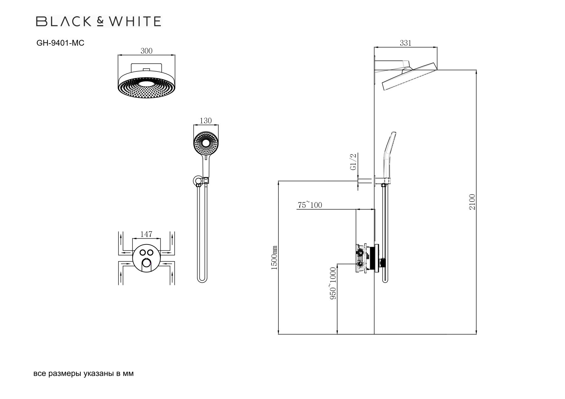 Душевой комплект Black&White Gravity 9401C с термостатом хром купить