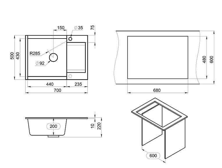 Мойка кухонная Granula 7003, БАЗАЛЬТ