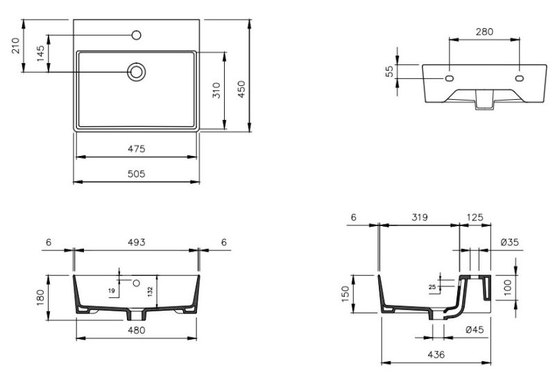 Навесная раковина из санфарфора Berges Ego размером 50х45х15 см.Прямоугольной формы, с готовым отверстием под смеситель, глянцевая белая.Встроенный слив-перелив оформлен декоративной накладкой в цвете хром.Крепеж в комплекте.Гарантия 10лет*Донный клапан необходимо приобрести отдельно