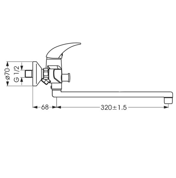 ORION Однорукоятковый настенный смеситель для ванны/душа, поворотный излив 320 мм, душевой гарнитур в комплекте (душевая лейка Ø70 мм, металлический шланг 1500 мм, держатель для лейки).