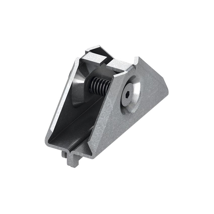 Угловое соединение для жесткого прямоугольного соединения сегментов профиля TECEspring; блок в сборе из оцинкованнои стали. Винт под торцевои ключ Torx 25 и нажимная пружина.